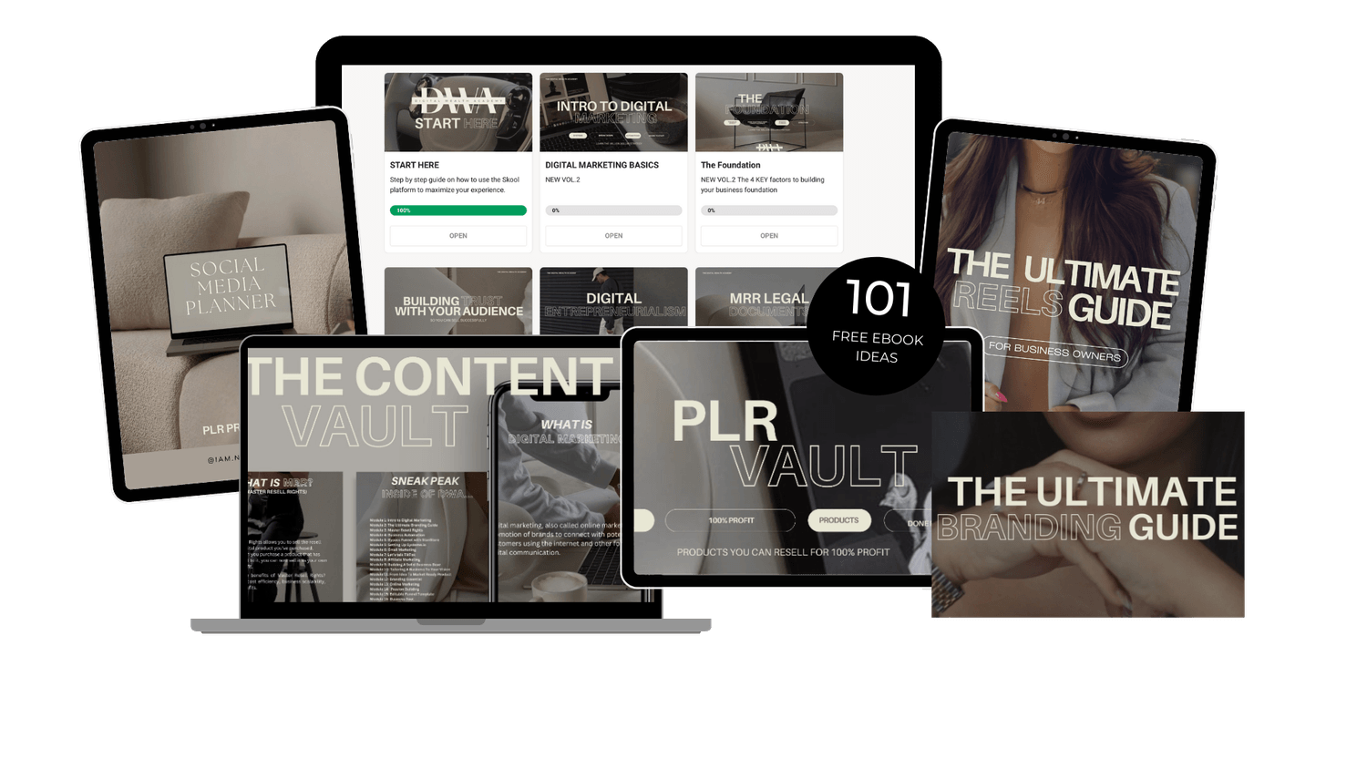 Además, +5 productos de PLR y MRR listos para empezar a vender y también ganarte el 100% de la ganancia: